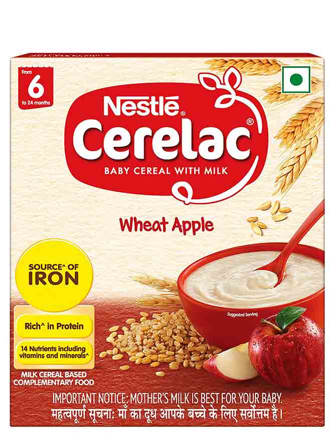 Nestle Cerelac- Wheat-Apple is an important source of 19 important nutrients including vitamins and minerals. In just 2 serves, it provides 75% baby's daily need of iron. It is very important for complete growth and development of the baby. It is rich in antioxidants that protects the body from free radicals produced .Legal Disclaimer : While we work to ensure that product information is correct, sometimes manufacturers may alter their ingredients in the products. Actual product packaging and ingredients may contain more and/or different information than that shown on our website. We strongly recommend that you please do not solely rely/depend on the information presented and you always be advised to read the labels, warnings and directions posted on the product before using or consuming the same. For additional information about the product you are advised to contact the manufacturer whose addresses are mentioned on the cover of the product. We take no responsibility for deviation / difference of product information mentioned in our website. Product Origin INDIA