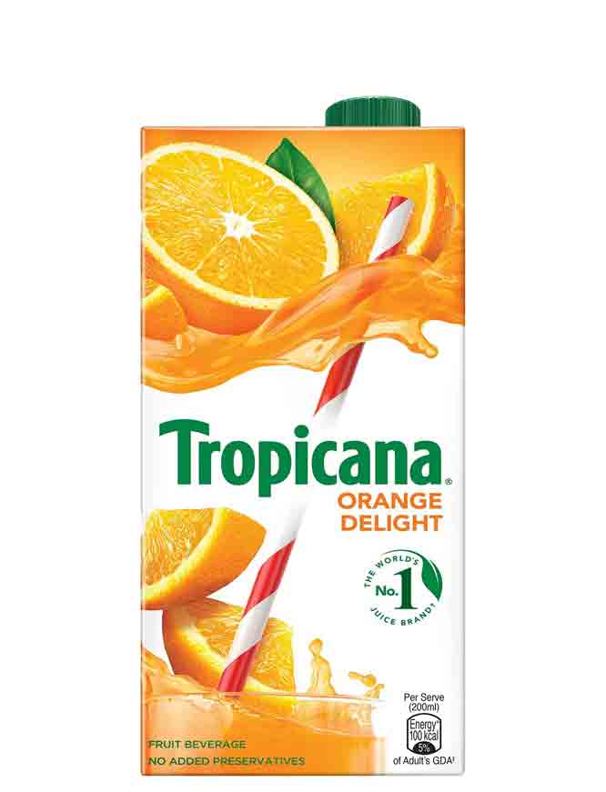Tropicana 100% Orange juice with no added sugar for a healthy you. With no added preservatives, color or artificial flavouring, Tropicana puts the good in morning. ... Water, orange juice concentrate 19.7%, Sugar, Vitamins acidity regulator, Nature orange identical flavour. Legal Disclaimer : While we work to ensure that product information is correct, sometimes manufacturers may alter their ingredients in the products. Actual product packaging and ingredients may contain more and/or different information than that shown on our website. We strongly recommend that you please do not solely rely/depend on the information presented and you always be advised to read the labels, warnings and directions posted on the product before using or consuming the same. For additional information about the product you are advised to contact the manufacturer whose addresses are mentioned on the cover of the product. We take no responsibility for deviation / difference of product information mentioned in our website. Product Origin INDIA