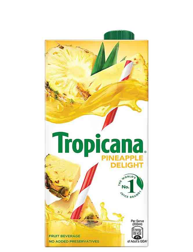 Enjoy the refreshing and delicious taste of pineapple! A special 6-layer protection gives you the goodness of tasty, ready to serve fruit beverage in every glass of Tropicana. Did You Know? Pineapple is a compound fruit that develops from many small fruits fused together around a central core. It contains an enzyme that is recognized to help in food digestion. Legal Disclaimer : While we work to ensure that product information is correct, sometimes manufacturers may alter their ingredients in the products. Actual product packaging and ingredients may contain more and/or different information than that shown on our website. We strongly recommend that you please do not solely rely/depend on the information presented and you always be advised to read the labels, warnings and directions posted on the product before using or consuming the same. For additional information about the product you are advised to contact the manufacturer whose addresses are mentioned on the cover of the product. We take no responsibility for deviation / difference of product information mentioned in our website. Product Origin INDIA