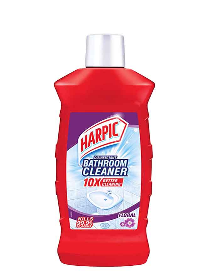 Harpic bathroom cleaner gives you unbeatable cleaning on greasy soil and particulate matter and Harpic freshness for the whole bathroom. Its thick liquid formula with powerful cleaning agents removes tough stains and kills 99.9 percent of germs. It also gives your bathroom a pleasant fresh fragrance. Used for regular cleaning of bathroom floor and tiles. Use 1.5 capfuls in half bucket of water. For tough stains and sink. Legal Disclaimer : While we work to ensure that product information is correct, sometimes manufacturers may alter their ingredients in the products. Actual product packaging and ingredients may contain more and/or different information than that shown on our website. We strongly recommend that you please do not solely rely/depend on the information presented and you always be advised to read the labels, warnings and directions posted on the product before using or consuming the same. For additional information about the product you are advised to contact the manufacturer whose addresses are mentioned on the cover of the product. We take no responsibility for deviation / difference of product information mentioned in our website. Product Origin INDIA