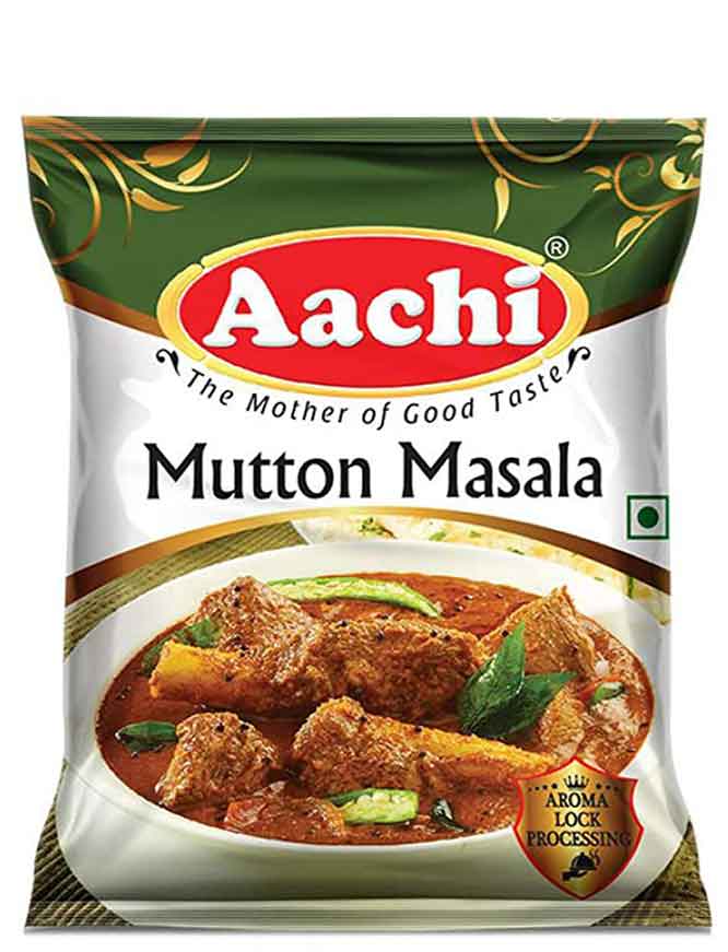 Aachi Mutton Masala is used to cook mutton gravy. It's preferred by using Indian spice. It gives good flavor for the food. Legal Disclaimer : While we work to ensure that product information is correct, sometimes manufacturers may alter their ingredients in the products. Actual product packaging and ingredients may contain more and/or different information than that shown on our website. We strongly recommend that you please do not solely rely/depend on the information presented and you always be advised to read the labels, warnings and directions posted on the product before using or consuming the same. For additional information about the product you are advised to contact the manufacturer whose addresses are mentioned on the cover of the product. We take no responsibility for deviation / difference of product information mentioned in our website. Product Origin INDIA