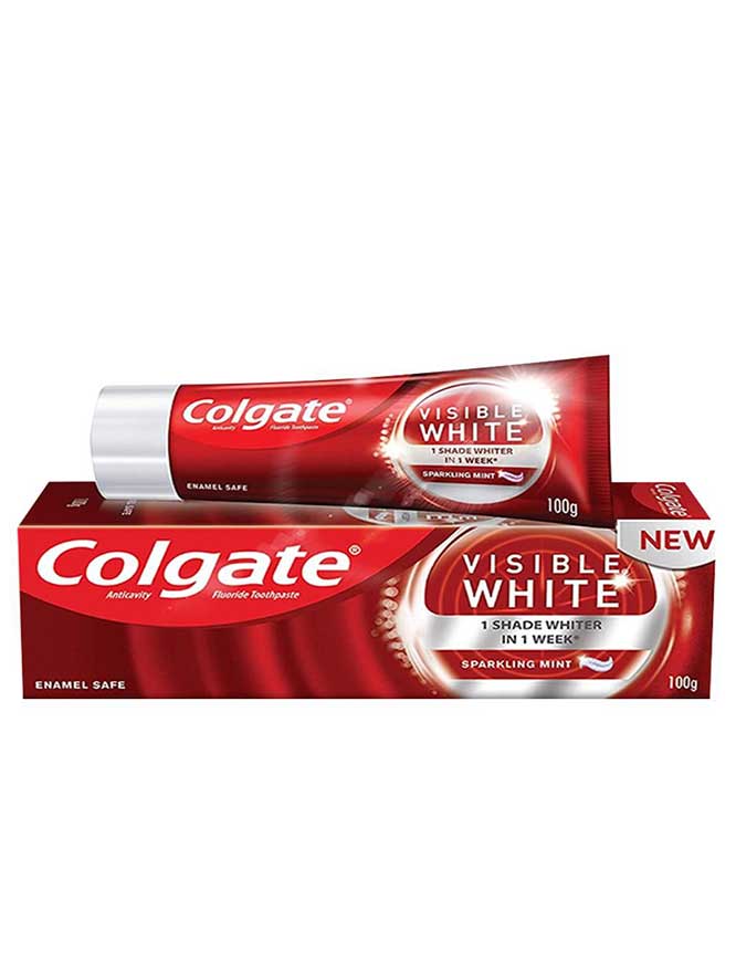 Colgate Visible White Toothpaste is a unique formula which comes infused with Whitening Accelerators. Contains dentist recommended hydrogen peroxide for teeth whitening. Enamel-safe teeth whitening, that's good for daily use. Fluoride toothpaste formula to protect against cavities. Legal Disclaimer : While we work to ensure that product information is correct, sometimes manufacturers may alter their ingredients in the products. Actual product packaging and ingredients may contain more and/or different information than that shown on our website. We strongly recommend that you please do not solely rely/depend on the information presented and you always be advised to read the labels, warnings and directions posted on the product before using or consuming the same. For additional information about the product you are advised to contact the manufacturer whose addresses are mentioned on the cover of the product. We take no responsibility for deviation / difference of product information mentioned in our website. Product Origin INDIA