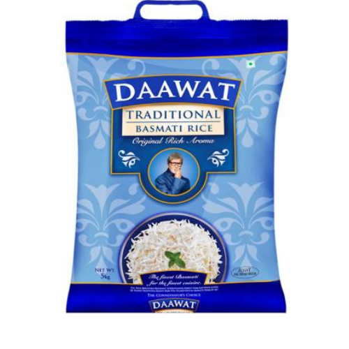 Daawat Traditional Basmati Rice is long and aromatic basmati rice! . You can any day opt for this rice worry-free for cooking biryani. Daawat Basmati rice has zero Trans fat and zero cholesterol which makes it a healthy option as well. It is high on Protein and carbohydrates .You can feel the aroma while cooking and see the long ness of grain after cooking. This is a wonderful choice for any celebrations. Legal Disclaimer : While we work to ensure that product information is correct, sometimes manufacturers may alter their ingredients in the products. Actual product packaging and ingredients may contain more and/or different information than that shown on our website. We strongly recommend that you please do not solely rely/depend on the information presented and you always be advised to read the labels, warnings and directions posted on the product before using or consuming the same. For additional information about the product you are advised to contact the manufacturer whose addresses are mentioned on the cover of the product. We take no responsibility for deviation / difference of product information mentioned in our website. Product Origin INDIA
