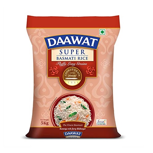 Daawat Super Basmati Rice promises a sweet taste and rich aroma as each grain is naturally aged. It has got many qualities and key health benefits also .Some of them are under mentioned. Zero cholesterol: Good for your heart and cardio vascular functioning. Whole grain (Lower carbohydrates): Helps in overall health. High on fiber: Good for digestion. Lower GI: Diabetic friendly. HET processed and enriched with vitamins and minerals for stronger immunity. Legal Disclaimer : While we work to ensure that product information is correct, sometimes manufacturers may alter their ingredients in the products. Actual product packaging and ingredients may contain more and/or different information than that shown on our website. We strongly recommend that you please do not solely rely/depend on the information presented and you always be advised to read the labels, warnings and directions posted on the product before using or consuming the same. For additional information about the product you are advised to contact the manufacturer whose addresses are mentioned on the cover of the product. We take no responsibility for deviation / difference of product information mentioned in our website. Product Origin INDIA